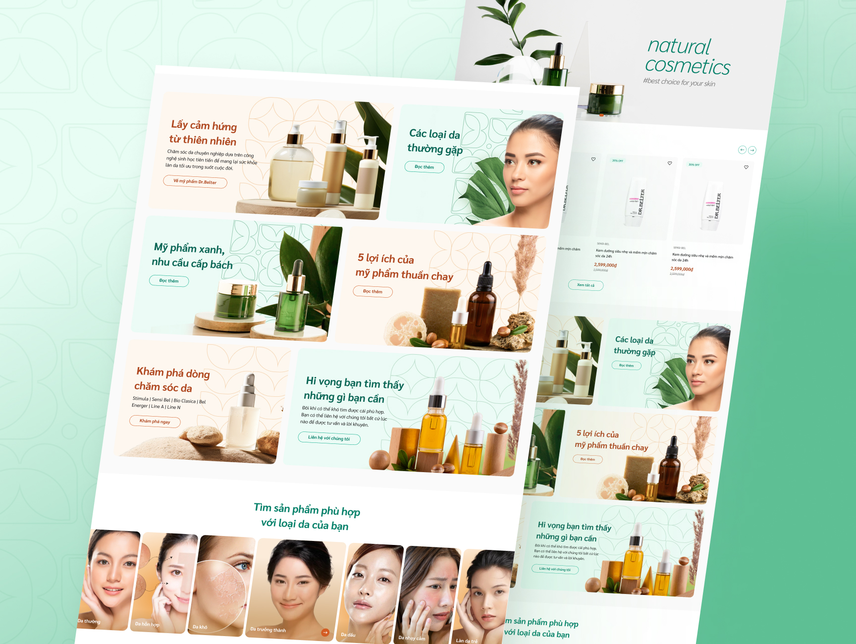 E-commerce website of Vietnamese cosmetic brand, with a gentle, elegant interface